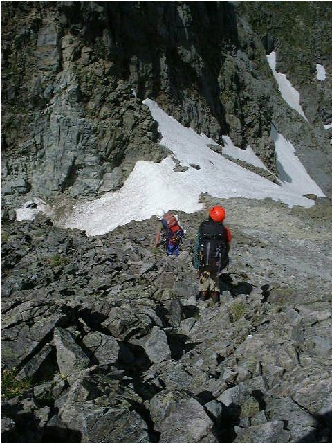今年はとても残雪が多く、V・Wのコルにもまだ雪が残っていた。