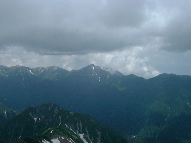 頂上に着く頃には、また雲が多くなってきた。雨を降らせる雲ではないけど、せっかくの常念山脈の景色もあまり冴えない。