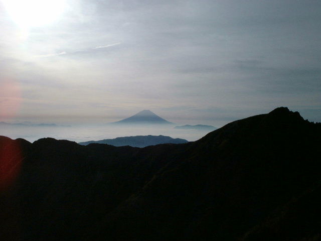 頂上にたどり着くと雪が舞っていた。一万尺の高峰では季節の進みが早い。もう冬支度だった。